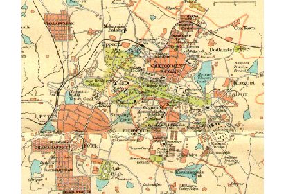 C’est sous la gouvernance britannique que Bangalore devient capitale d’état et que de nombreuses industries seront implantées. Sa situation centrale sur le plateau du Deccan en fait une place stratégique pour l’administration du sud de l’Inde : Bangalore va devenir une ville de garnison composée d’immenses cantonments qui accueilleront tant les logements des soldats, que les espaces d’entraînement ou encore toute l’industrie de l’armement. Ces nouveaux quartiers aménagés en marge de la vieille ville vont profondément structurer et contraindre le développement futur de la ville.