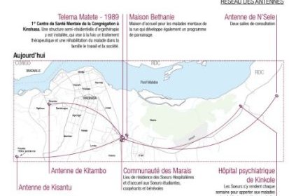 Présentes depuis 1989 à Kinshasa, les Sœurs ont pour vocation de rapprocher les dispositifs de santé mentale de la population, notamment des plus démunis, au travers d’un maillage couvrant différents quartiers de la ville.