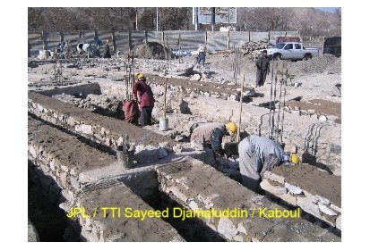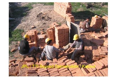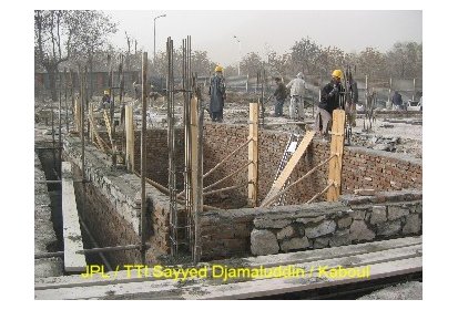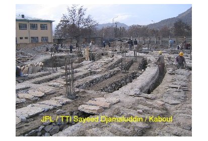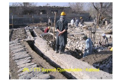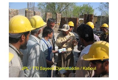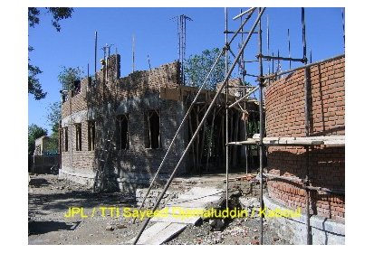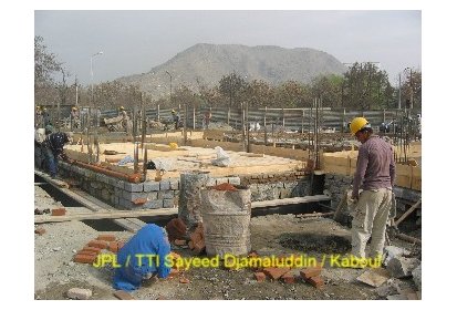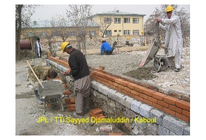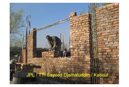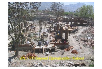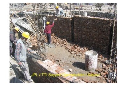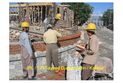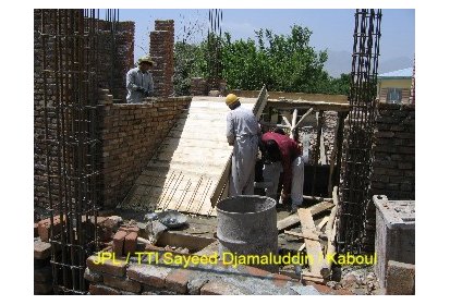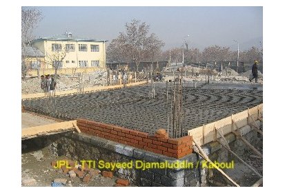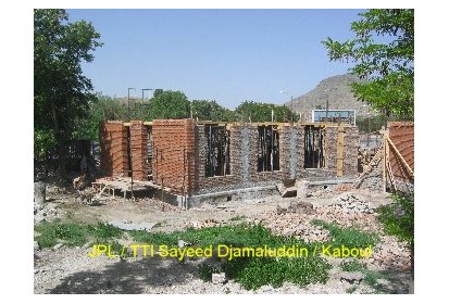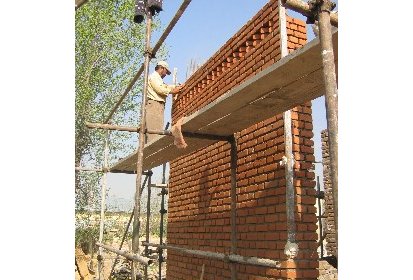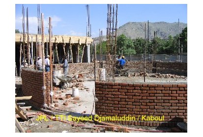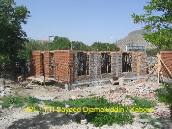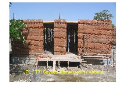 Ainsi, pendant ces deux derniers mois des ateliers de formation ont été mis en place pour recréer l’art de la construction en brique apparente avec décorations. C’est un savoir-faire que l’on peut retrouver dans l’architecture classique des maisons et des clôtures à Kaboul. Afin de mettre ce travail en œuvre les briques sont polies. Elles proviennent de fours à briques traditionnels avec un moulage artisanal ce qui leur donne un aspect rustique. Ce travail est pénible et assez répétitif mais nécessaire pour un bon rendu du matériau.